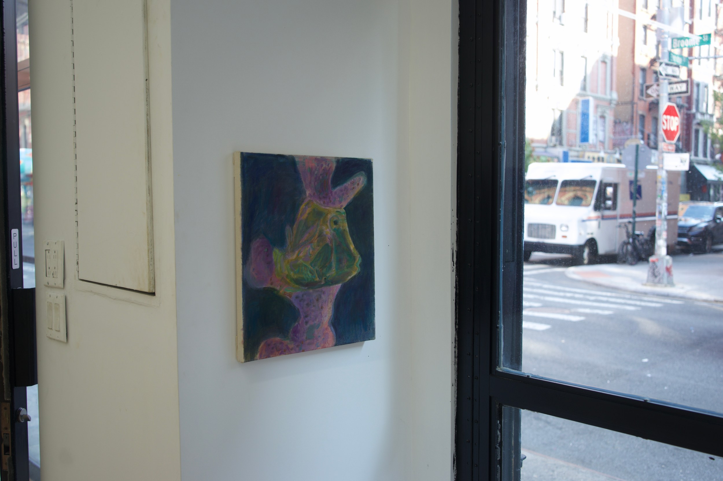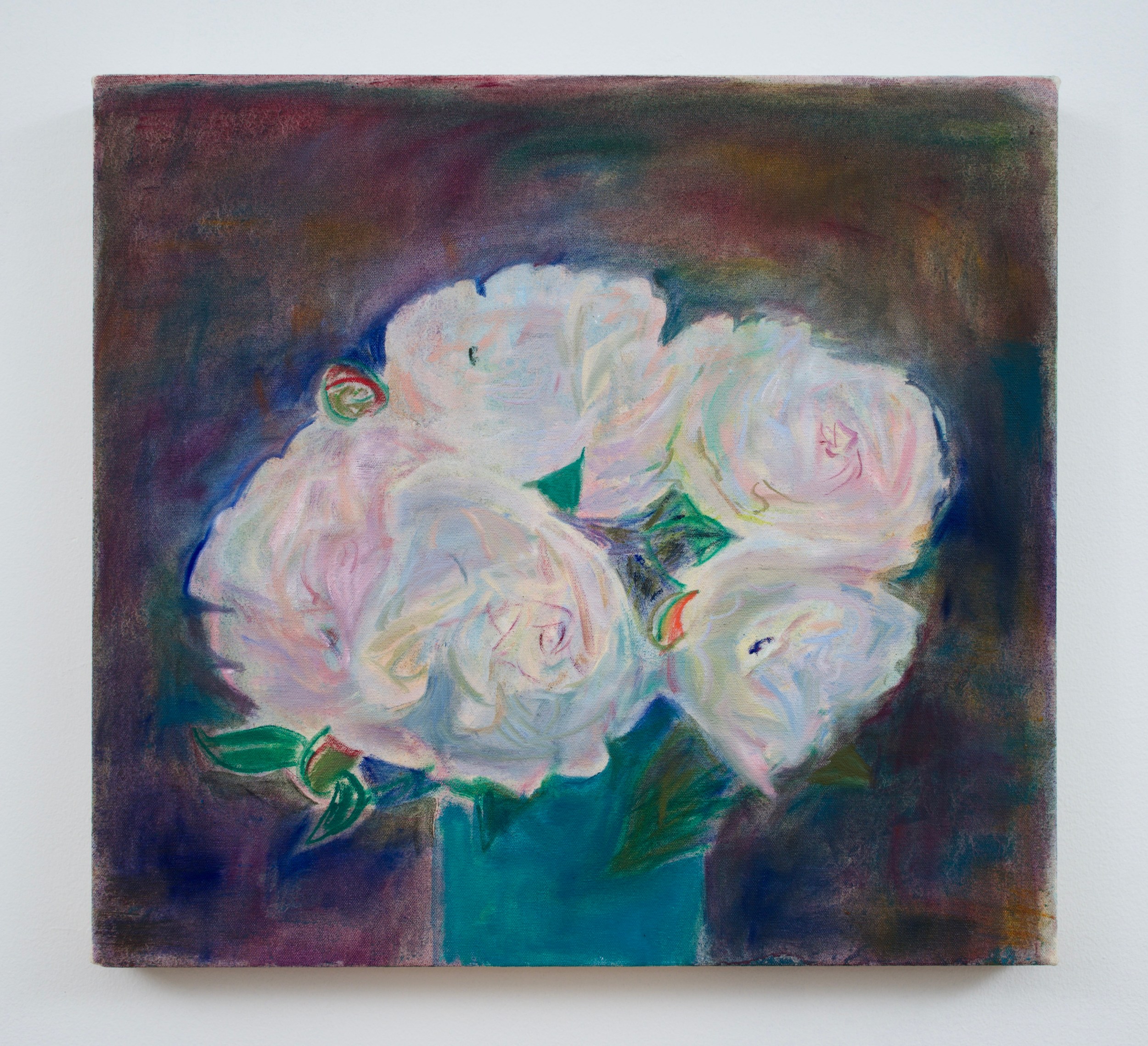 Beginning with thin washes of color, the pigment deposits in the grooves of the weave and emphasizes the texture of the fabric. Using reference materials such as linen postcards and 19th century colorized stereoscope images, the layered colors are reminiscent of these old printing methods. Overlapping tones of dusty pinks and violets tinged with orange suggest things seen through grainy atmospheric distance as well as across the distance of time. Scumbled marks of thicker paint over these thinner layers coalesce into images. Brant is inspired by artists who use representation as a starting point for the imagination to wander, including Post Impressionists like Pierre Bonnard, early American self-taught artists, and Chinese landscape painters.