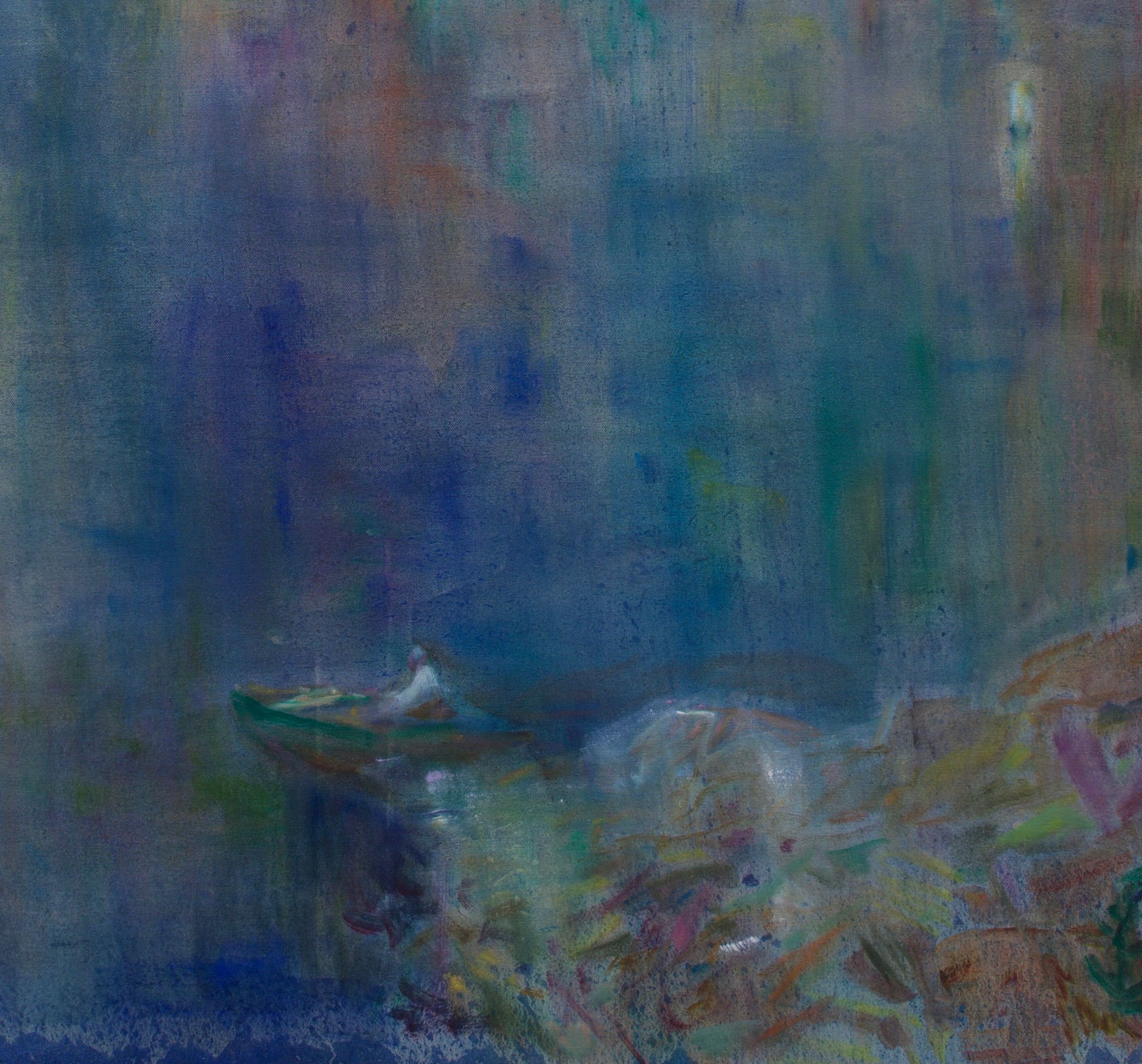 Colin Brant makes oil paintings on canvas spanning in scale from handheld to the width of his outstretched arms. Beginning with thin washes of color, the pigment deposits in the grooves of the weave and emphasizes the texture of the fabric. Using reference materials such as linen postcards and 19th century colorized stereoscope images, the layered colors are reminiscent of these old printing methods. Overlapping tones of dusty pinks and violets tinged with orange suggest things seen through grainy atmospheric distance as well as across the distance of time. Scumbled marks of thicker paint over these thinner layers coalesce into images. Brant is inspired by artists who use representation as a starting point for the imagination to wander, including Post Impressionists like Pierre Bonnard, early American self-taught artists, and Chinese landscape painters.